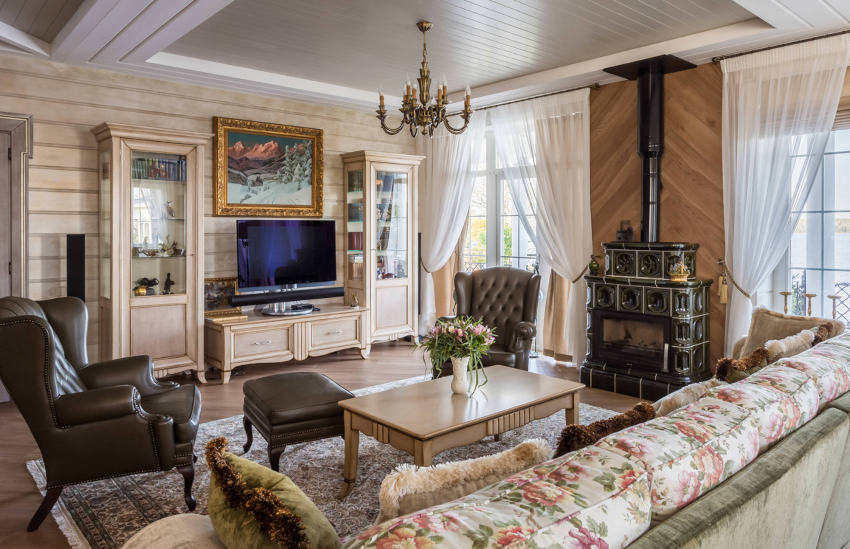 Ruang tamu yang selesa dan berperabot menarik adalah ciri khas rumah ini. Kedudukan sementara, zon yang belum selesai atau penampilan yang tidak sempurna tidak dapat diterima di dalamnya. Tirai secara rawak akan membatalkan usaha reka bentuk, dan yang dipilih dengan betul dan kemas akan memenuhi ruangan dengan kecantikan dan menyumbang untuk mewujudkan dalaman yang selesa dan menyenangkan.