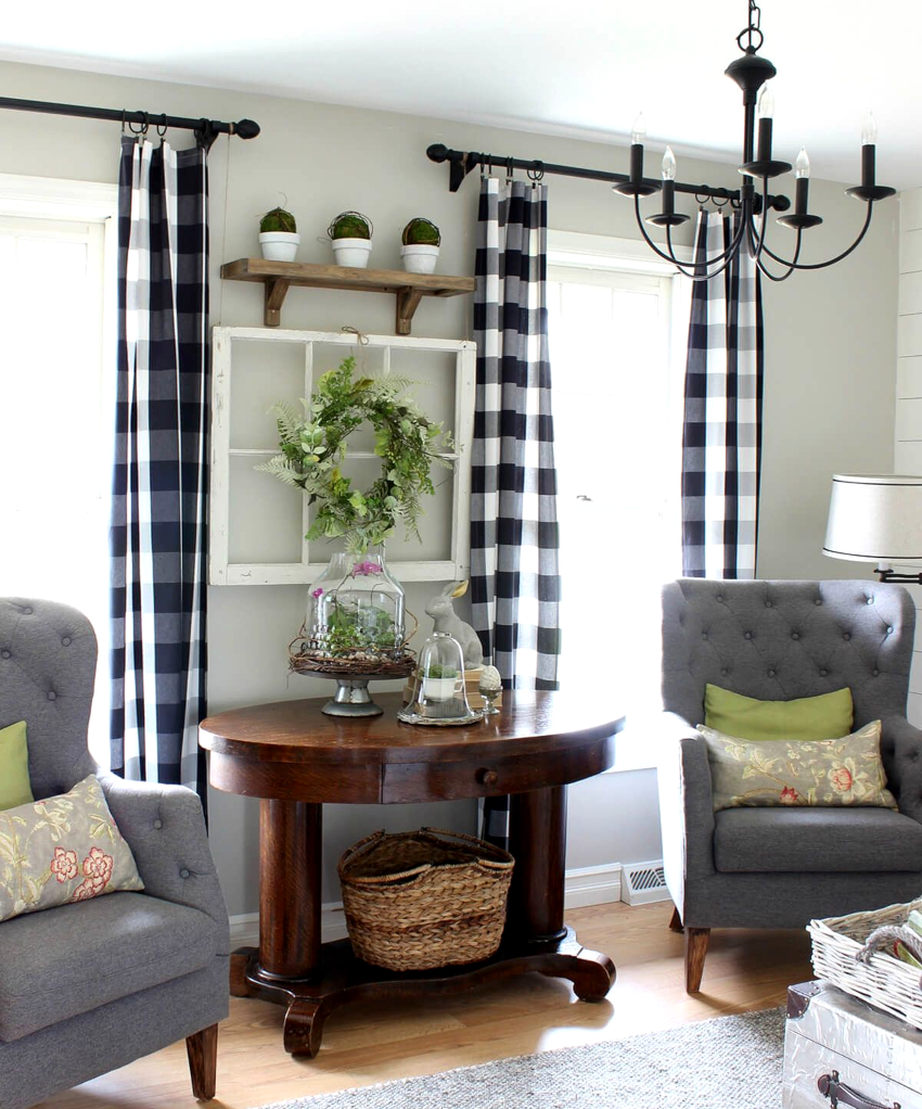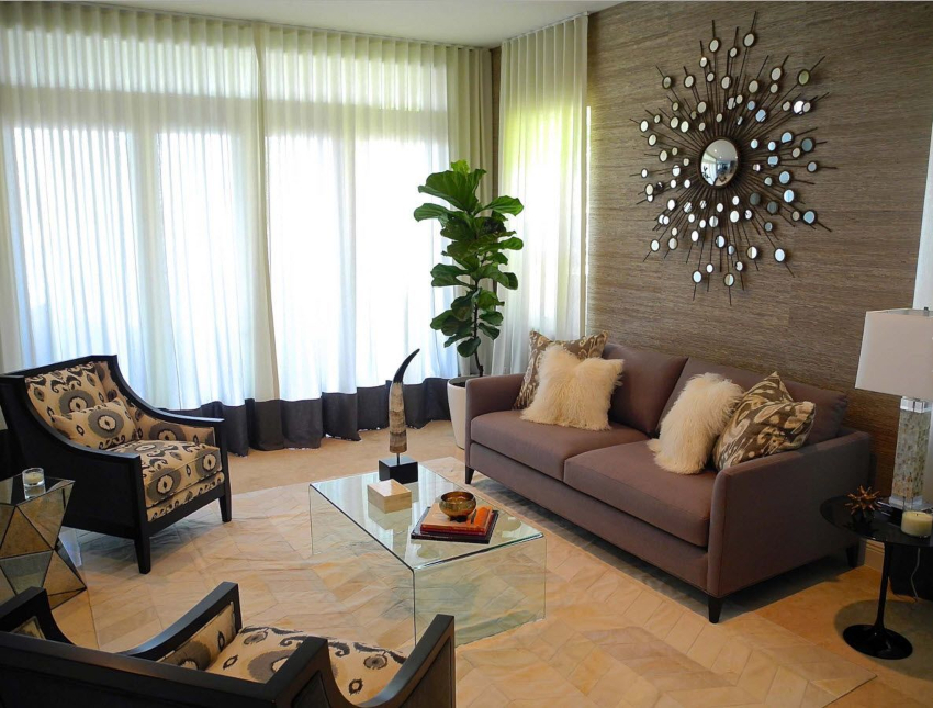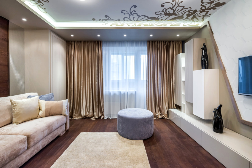 Anda boleh membuat ruang dalaman yang menarik di ruang tamu dengan menggunakan pelbagai pilihan untuk menghias langsir