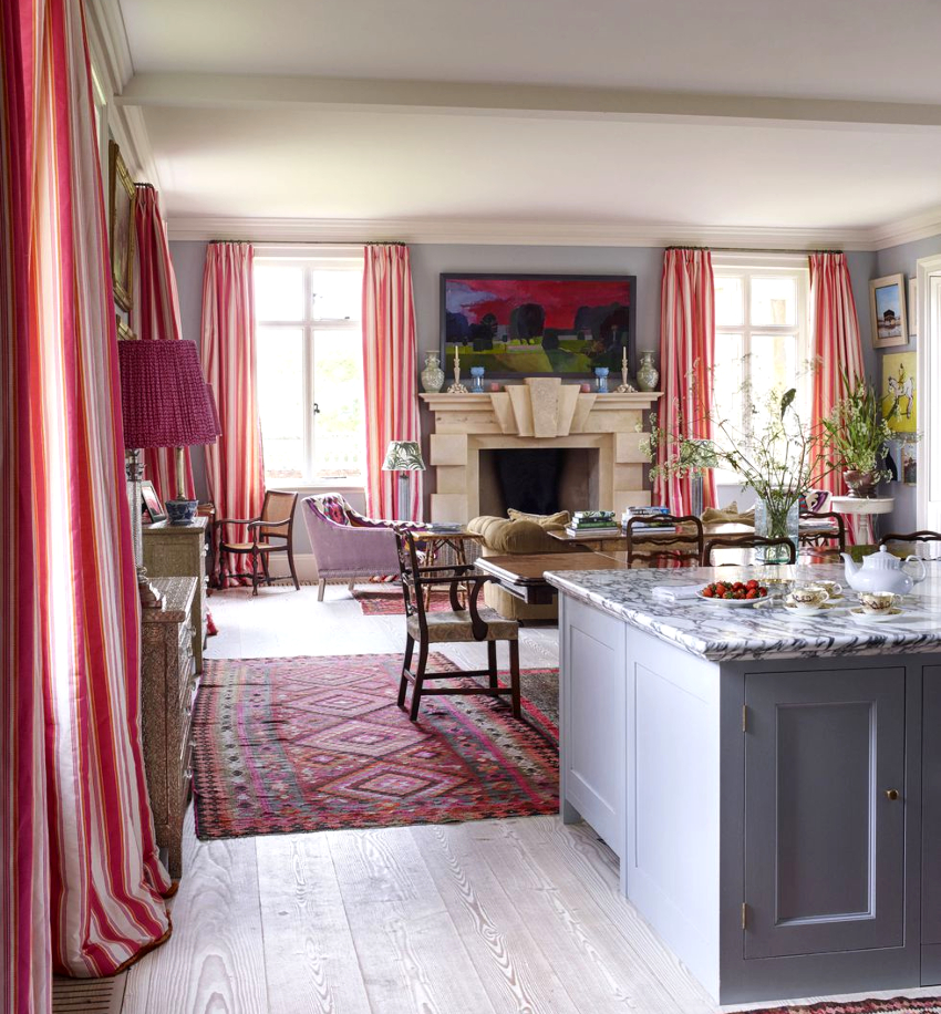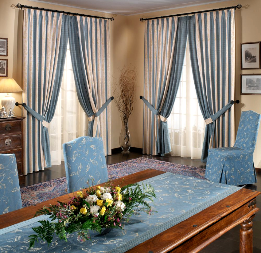 Ruang tamu adalah ruang yang menarik ke arah perayaan, kesungguhan, bahkan jika ia dibuat dalam gaya loteng, minimalis, teknologi tinggi, dan lain-lain, iaitu, dalam arah gaya di mana rasionalitas, garis dan garis terkendali mendominasi. Di ruangan ini langsir boleh menjadi salah satu elemen reka bentuk utama yang mewujudkan suasana keselesaan dan keramahan.
