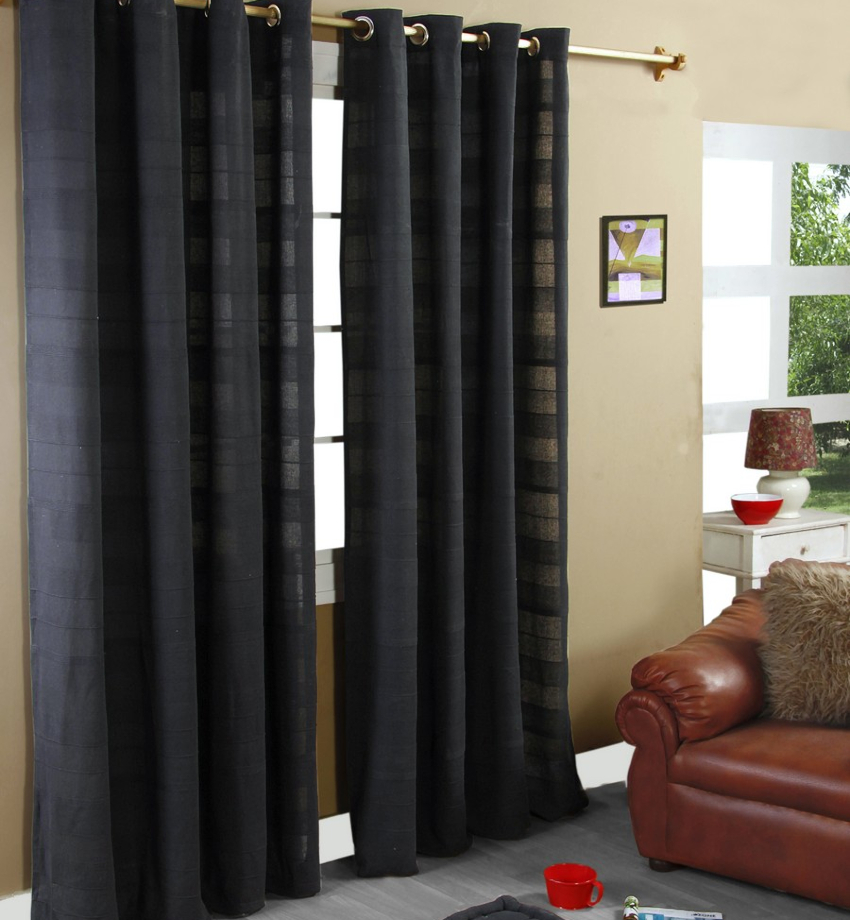 Sekiranya perlu untuk menutup tingkap dengan tirai dengan berat, eyelet boleh menjadi elemen pengikat dan hiasan yang paling sesuai. Contohnya, langsir berwarna coklat tebal di ruang tamu boleh digantung di atas kelopak mata. Penambahan sederhana seperti itu akan menjadikan tirai lebih berkesan.