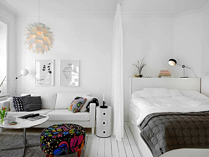 - penggunaan perabot besar, dengan mudah menyembunyikan tempat tidur;