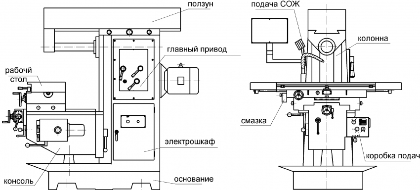 Reka bentuk mesin single-spindle merangkumi meja mendatar dengan sepasang sarang lidah-dan-alur untuk memasang pembaris panduan. Ia dipasang di atas katil besi tuang. Di bawah meja terdapat kereta luncur yang bergerak di sepanjang panduan. Mereka mempunyai gelendong pada dorong tujahan dan sepasang galas. Di bahagian atas elemen ini terdapat gelendong lain - pemalam. Ia direka untuk memasang bahagian pemotong.
