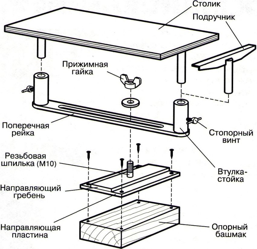 Nota!Semasa membuat meja untuk penghala tangan dengan tangan anda sendiri, sangat penting untuk mengambil kira ketinggian orang yang akan bekerja di belakangnya.