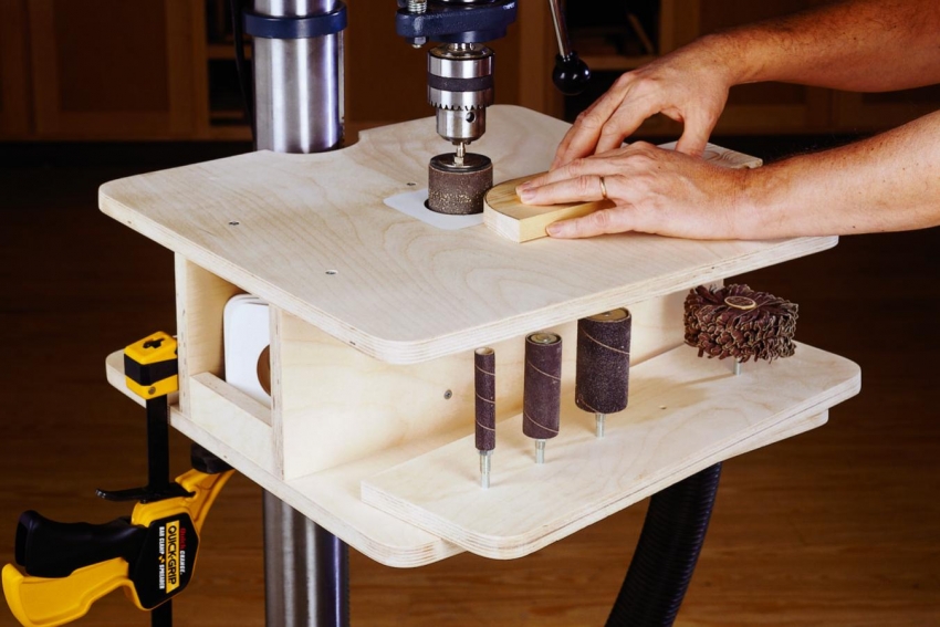 Dengan menggunakan meja kerja dengan permukaan yang kukuh dan rata, anda boleh membuat mesin bubut dari gerudi dengan tangan anda sendiri