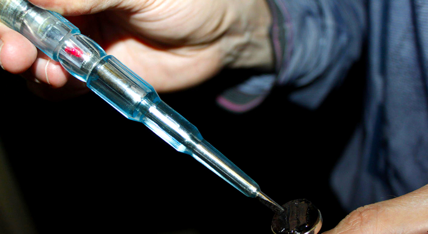 Perkara pertama yang perlu anda ketahui semasa mengesan kehadiran arus di urat adalah cara memeriksa pemutar skru penunjuk. Untuk memastikan bahawa peranti berfungsi dengan betul, anda perlu menyentuh plat pada pemegang dan hujungnya secara serentak. Lampu LED harus menyala. Ini adalah ujian untuk model dengan bateri. Anda boleh memeriksa pemutar skru paling mudah dengan menyentuh sengatan ke bahagian hidup di bawah voltan dan dengan menyentuh plat logam pada pemegang dengan tangan anda.