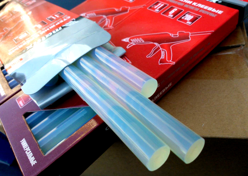 Penting! Bercakap mengenai kelebihan gam pelekat, perlu diperhatikan bahawa ia menjimatkan, kerana harga lem panas, yang dijual dalam bentuk batang silikon, agak rendah. Harganya sekitar dua hingga tiga kali lebih sedikit daripada gam cecair yang boleh dipercayai dengan isipadu yang sama. Pada masa yang sama, jisim gam dapat dosis seakurat mungkin, dan jumlah sampah minimum.