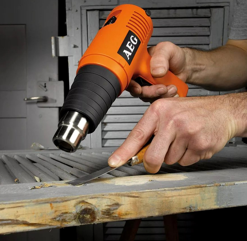 Peranti jenis industri ini sering digunakan dalam proses pengeringan dempul, pematerian plastik, dan juga ketika memasang siling regangan.