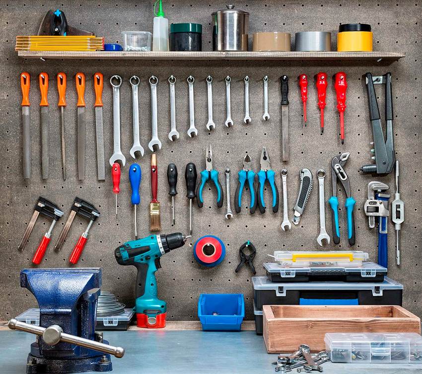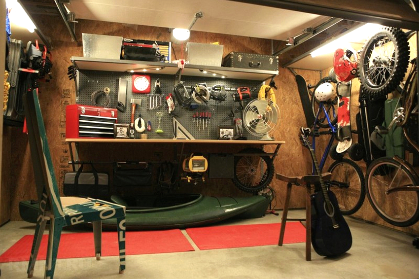 Nasihat berguna! Masih mungkin untuk mengatur ruang penyimpanan di tempat yang ketat untuk alat. Contohnya, dengan menggunakan peretas hidup untuk bengkel garaj, mudah memasang panduan galas dengan laci dengan tangan anda sendiri, atau untuk menambah meja lipat dengan alas pada roda yang dapat dengan mudah dipindahkan ke tempat lain apabila meja kerja tidak digunakan.