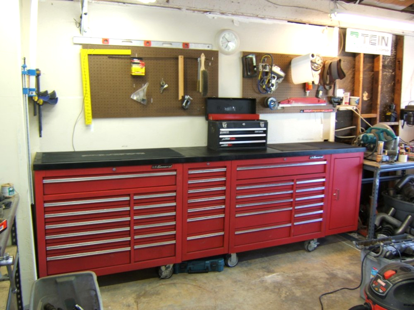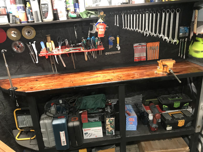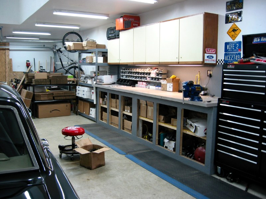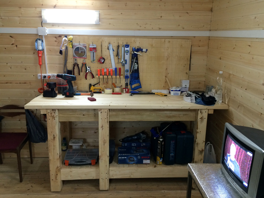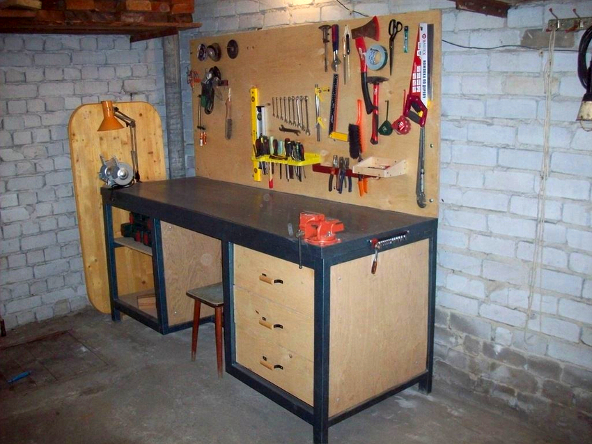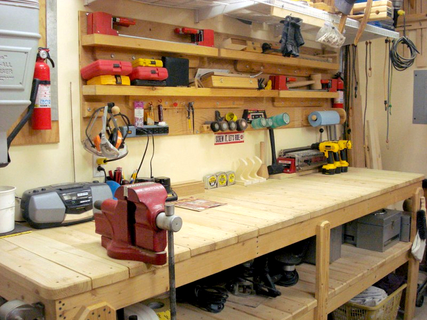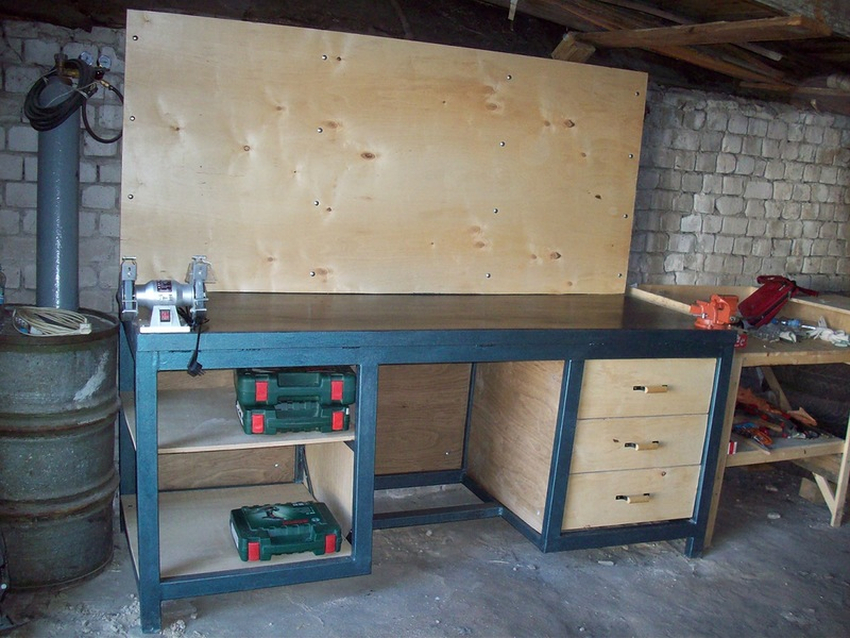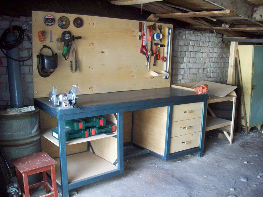 Jenis bangku kerja di garaj: gambar struktur untuk tujuan yang berbeza