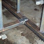 Pada peringkat seterusnya, tiang menegak mesti dibuat dari sudut keluli dan disambungkan ke bahagian bingkai. Sekiranya lantai di garaj dipenuhi kerikil, untuk kestabilan meja kerja yang lebih besar, sokongan khas (pyataks) mesti dikimpal ke kakinya. Di bilik dengan lantai konkrit, meja kerja dipasang dengan bolt jangkar. Untuk ini, perlu juga disediakan unsur-unsur yang sesuai dalam reka bentuk.