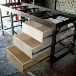 Nasihat berguna! Sekiranya reka bentuk meja kerja dirancang untuk berfungsi dalam keadaan berdiri, pastikan anda menyediakan sokongan kayu untuk kerusi sekiranya anda ingin duduk di meja.