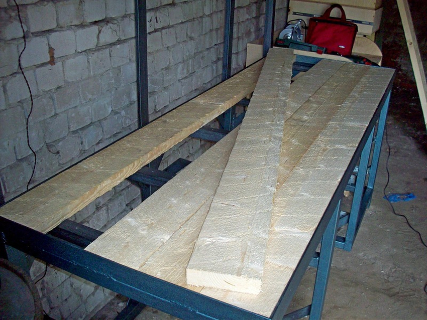 Kekurangan kemahiran dan pengetahuan, lebih baik memberi keutamaan kepada meja kerja kayu. Lebih mudah bekerja dengan bar daripada memasang struktur logam berat dari sudut keluli dengan mengimpal. Dalam kes ini, anda boleh mengehadkan jigsaw dan latihan asas.