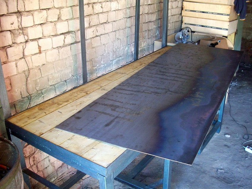 Sekiranya tuan punya mesin kimpalan separa automatik di tangan, anda boleh menyambungkan terlebih dahulu benda kerja logam di meja. Selepas itu, kepingan keluli dipasang pada mereka. Dalam kes ini, pengelasan tempat adalah wajib. Sekiranya anda menggunakan teknologi standard semasa menyambungkan permukaan kerja ke kerangka logam, terdapat kemungkinan terlalu panas dan kerosakan pada kepingan. Akibatnya, gelombang mungkin muncul di permukaan meja, yang akan menimbulkan ketidakselesaan dalam proses kerja.
