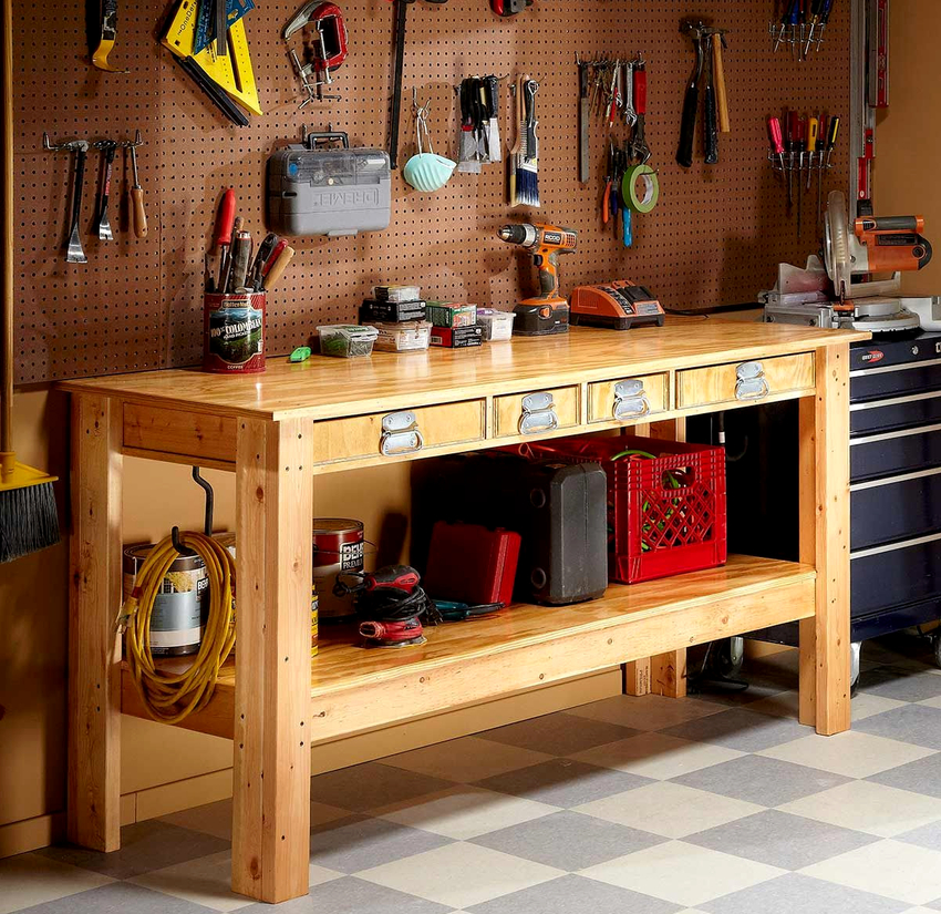 Meja kerja yang dibuat dengan baik akan mewujudkan keadaan yang optimum untuk bekerja di garaj. Sekiranya semua syarat yang diperlukan dipenuhi, strukturnya akan bertahan lama.