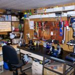 Meja kerja dan peralatan itu sendiri mesti diletakkan supaya dalam proses kerja tidak diperlukan untuk memandu kereta keluar dari garaj. Dalam kes ini, strukturnya tidak boleh mengganggu kemasukan kereta secara percuma atau menyekat pintu.