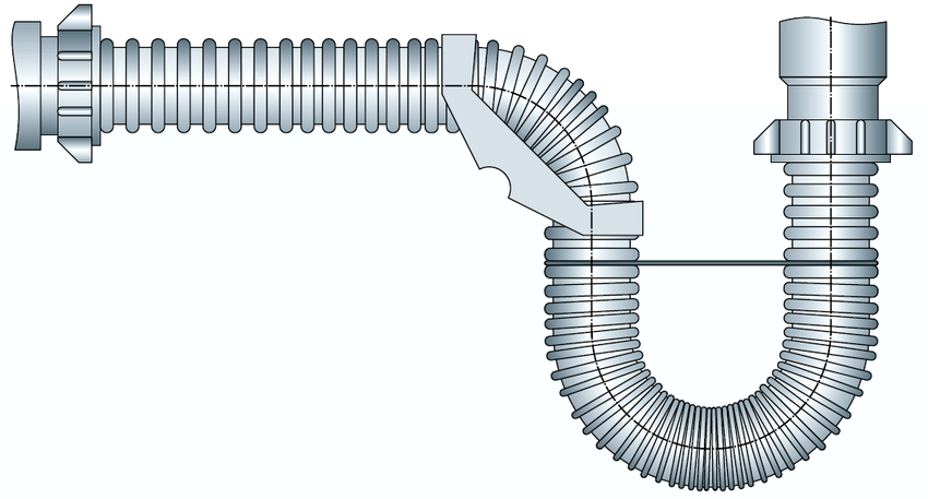 Jenis sifon bergelombang ditunjukkan oleh modifikasi polipropilena, yang dibezakan oleh kekuatan, fleksibiliti dan kemungkinan pemasangannya ketika mengatur sistem kumbahan di bilik bersaiz kecil. Oleh kerana keplastikannya, paip seperti itu dapat ditempatkan di tempat-tempat di mana jenis sifon lain tidak dapat diletakkan. Ini adalah pilihan paling mudah, yang mengandungi bilangan elemen minimum yang tidak memerlukan pemasangan.