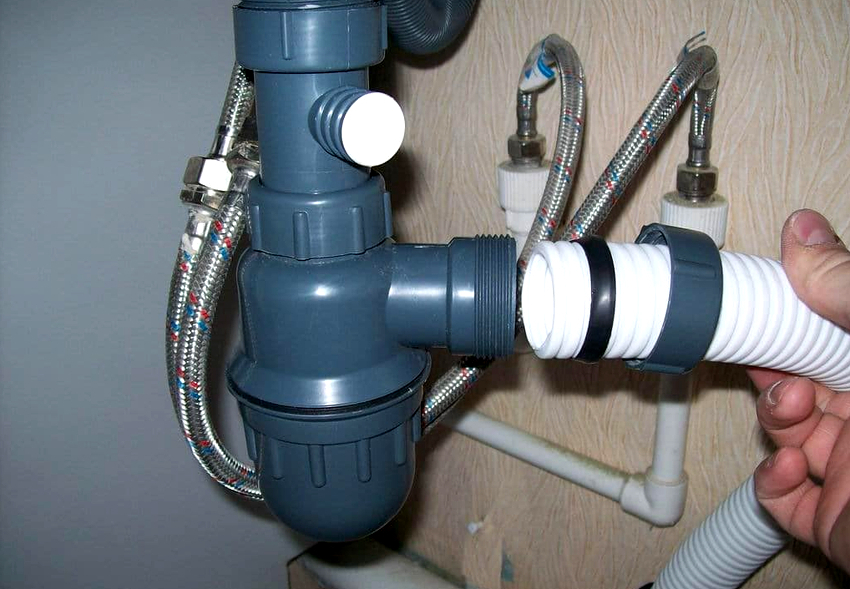 Pada peringkat seterusnya, kelengkapan dipasang untuk menghiasi lubang saliran di tab mandi, sink atau singki. Skru pelekap panjang dimasukkan ke dalamnya, yang menetapkan sifon. Pertama, ia dipintal dengan tangan, kemudian dikepit dengan kunci. Gasket getah diletakkan di soket plastik. Seterusnya, masukkan bolt lutut. Akhirnya, ketatkan kacang luar plastik. Segel air disambungkan ke paip pembetung dengan menggunakan paip polipropilena.