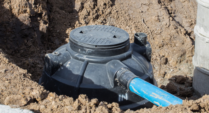 Tangki pembetungan: telaga plastik, tangki simpanan tangki septik, tong, tangki. Elemen yang berkaitan untuk pemasangan dan operasi sistem.