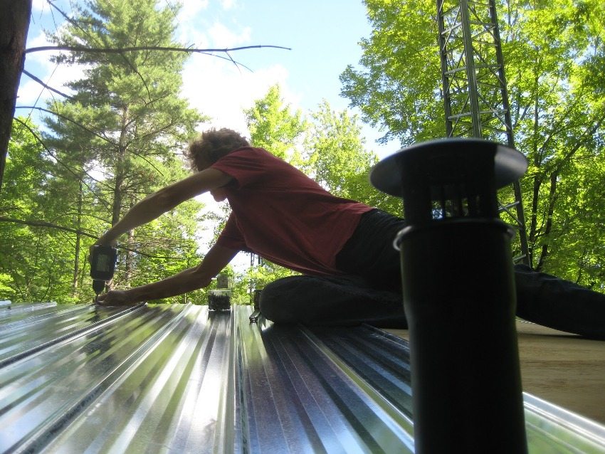 - organisasi bumbung. Dengan bantuan papan, panjangnya mestilah sekurang-kurangnya 1.8 m, bumbung untuk "Shalash" dibuat. Untuk melakukan ini, bahan tersebut mesti diletakkan di bahagian belakang dan depan struktur dan memperbaikinya dengan pengikat pada bilah kayu. Hasilnya adalah bumbung;