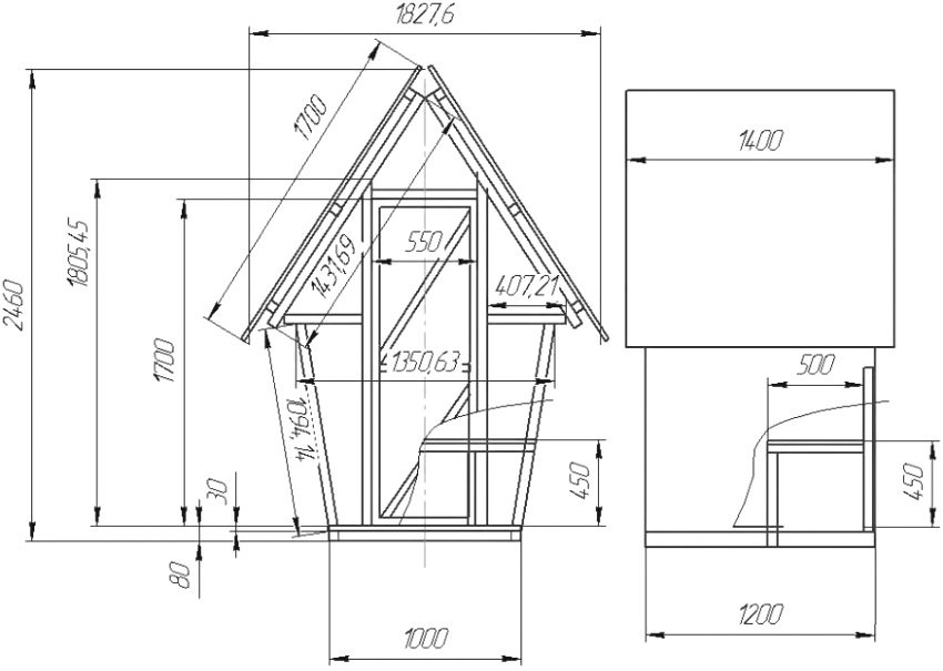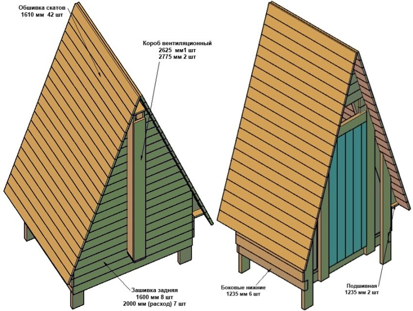 - 5 Pembinaan tandas untuk kediaman musim panas: lukisan dengan dimensi untuk reka bentuk jenis "Birdhouse"