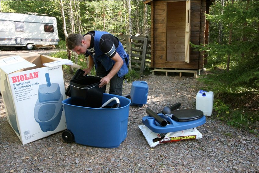 Catatan! Struktur tandas gambut buatan kilang tidak perlu dihubungkan ke sistem perkhidmatan: pembentungan, rangkaian elektrik dan bekalan air. Mereka boleh dianggap bebas dan autonomi.