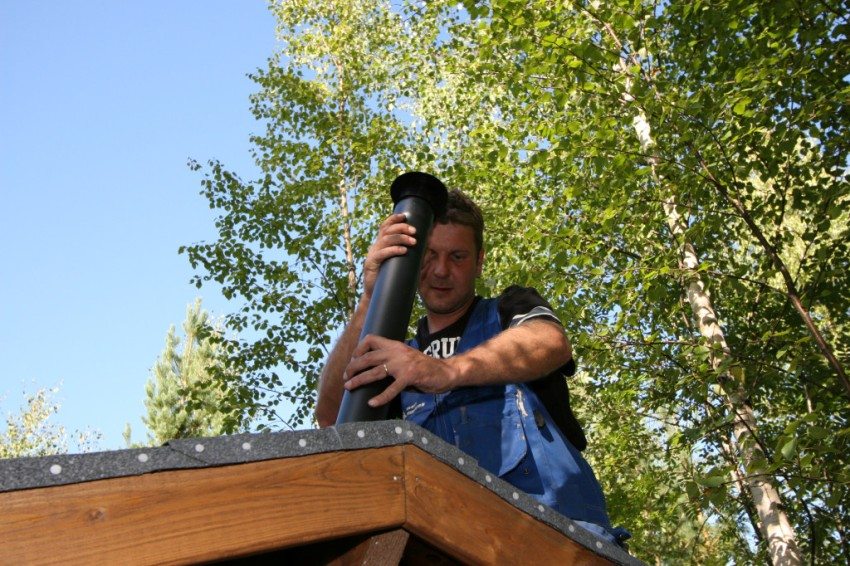 Untuk memasang paip di catwalk tandas, dan juga di bumbungnya, dibuat slot dengan diameter yang sesuai. Paip mesti naik sekurang-kurangnya 0.2 m di atas bumbung.