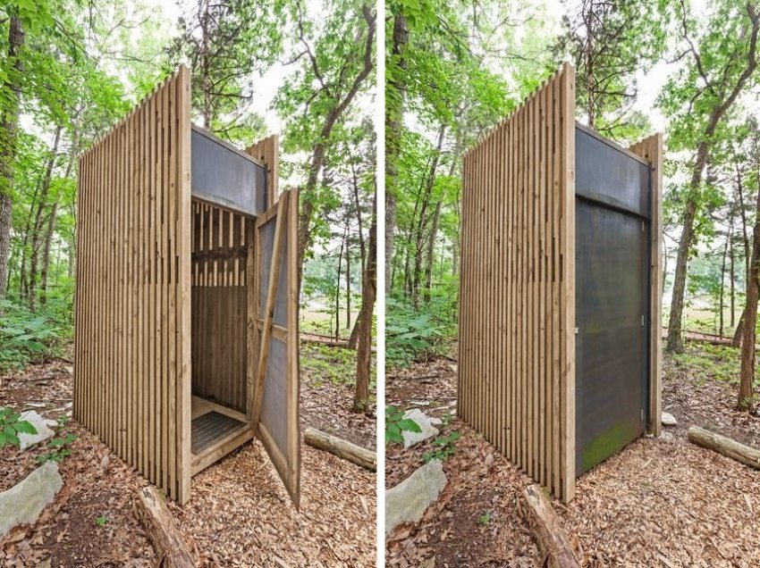 Produk kayu dapat digayakan sebagai pondok dongeng atau rumah, berkat yang anda dapat memperoleh bukan hanya bangunan yang berfungsi, tetapi juga estetika. Sebagai bahan penamat untuk bingkai, anda boleh menggunakan lapisan bukan papan. Ini akan menjadikan bahagian tandas di bahagian atas kelihatan sangat menarik dan bergaya.