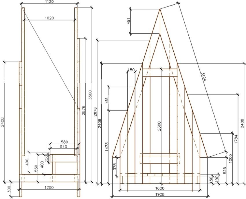 Arahan yang disebutkan sebelumnya tidak termasuk dimensi struktur almari gambut, kerana pembinaan struktur sedemikian di laman web ini tidak disertai dengan kesulitan. Sebagai bahagian di atas tanah, anda boleh membuat gerai jenis "Shalash".