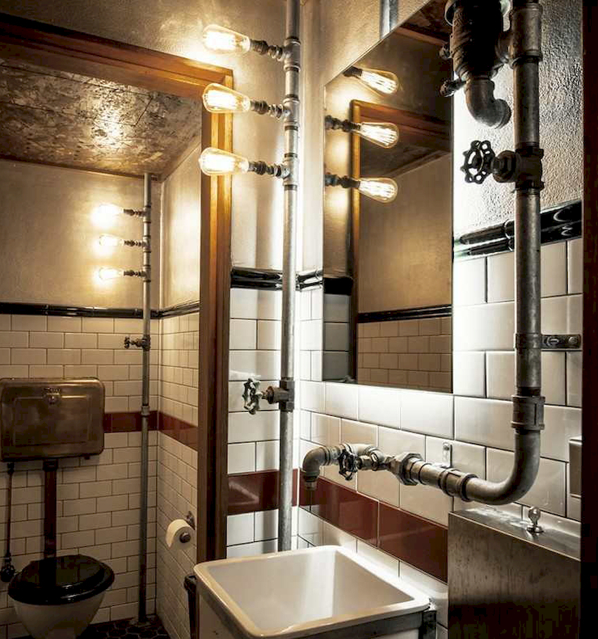 Rel dipasang ke dinding tepat di bawah paip. Oleh kerana reka bentuk dan kedekatan yang serupa, elemen-elemen ini kelihatan seperti satu keseluruhan, dan peraturan keselamatan tidak dilanggar.