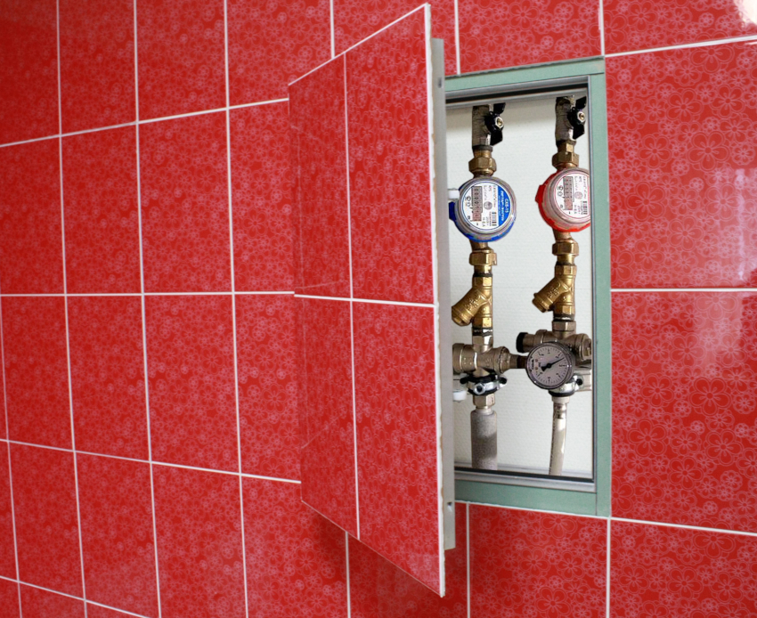 Adalah mustahak untuk memikirkan dalam proses membaiki tandas bagaimana menyembunyikan paip sedemikian rupa sehingga pada masa yang sama akses ke meter dijaga. Lagipun, mereka harus selalu membaca, dan juga perlu disemak setiap beberapa tahun. Pemasangan penetasan khas lengkap dengan pintu akan membantu menyelesaikan masalah akses ke meter.