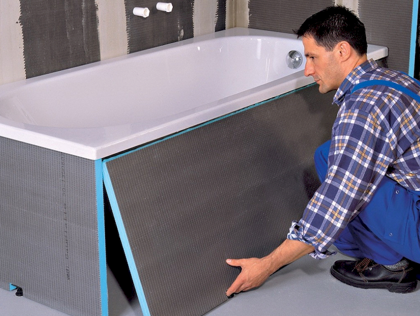 Membina tembok palsu atau kotak eternit dianggap kaedah penyamaran yang lebih sukar. Reka bentuk sedemikian membolehkan anda menyembunyikan saluran paip, yang berjalan secara mendatar dan menegak. Kaedah ini juga sesuai untuk pelapisan tab mandi, namun, tidak seperti panel plastik, drywall perlu diselesaikan.