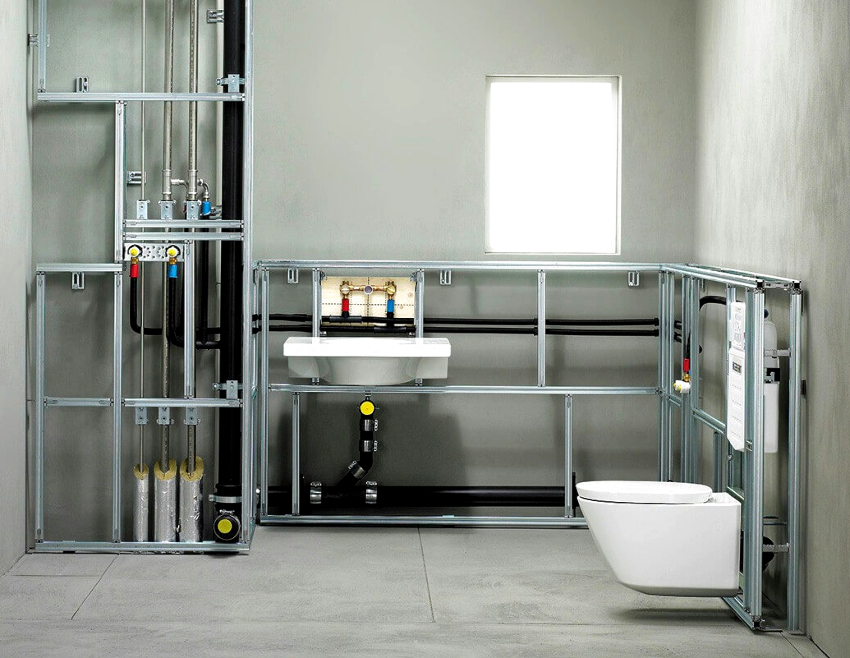 Rangka berfungsi bukan hanya kotak yang dilapisi dengan jubin, tetapi struktur yang mudah yang dapat dibongkar jika dikehendaki. Sekiranya terdapat kebocoran, selalu ada akses percuma ke kawasan-kawasan ini.