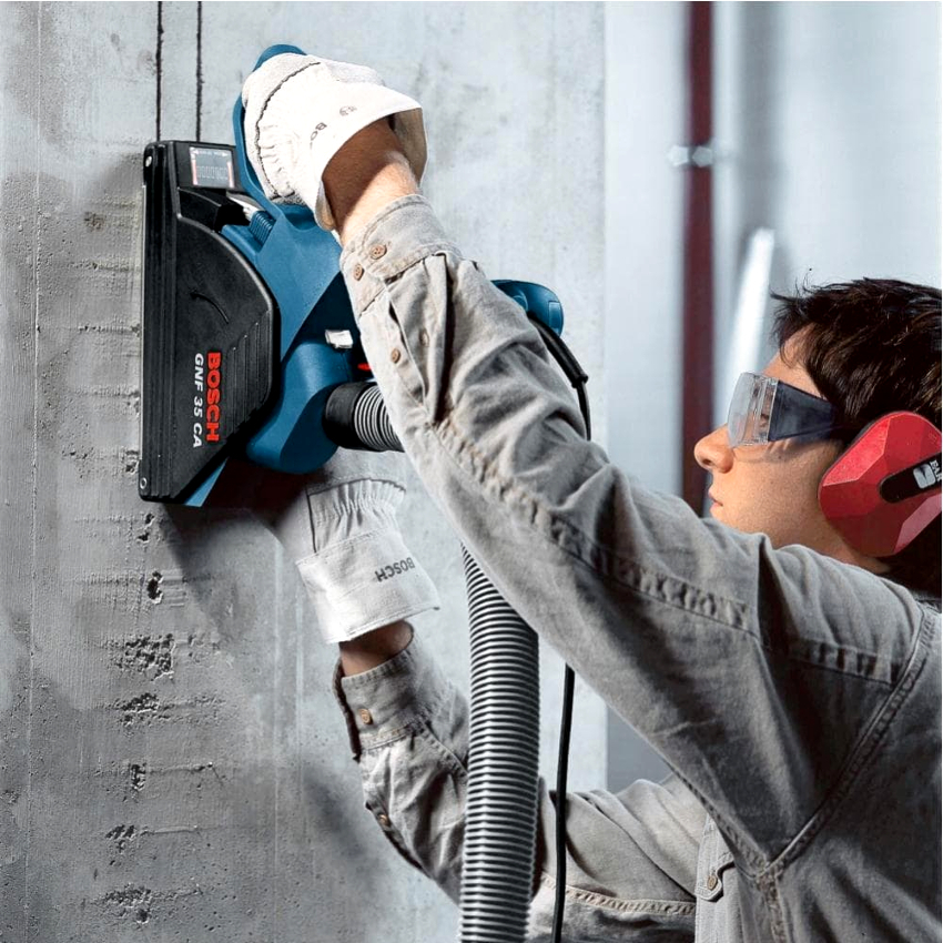 Semasa bekerja dengan latihan berlubang, pastikan untuk menggunakan alat pernafasan dan cermin mata keselamatan.
