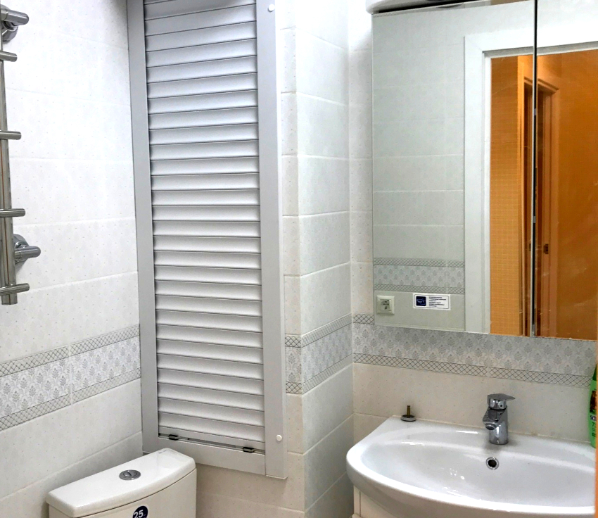 Cara menyembunyikan paip di tandas dengan akses ke dalamnya: pemasangan penutup roller