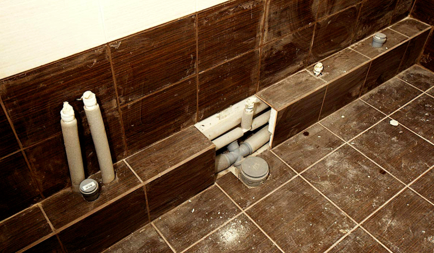 Cara menyembunyikan paip di bilik mandi dengan betul: petua memasang saluran paip tersembunyi