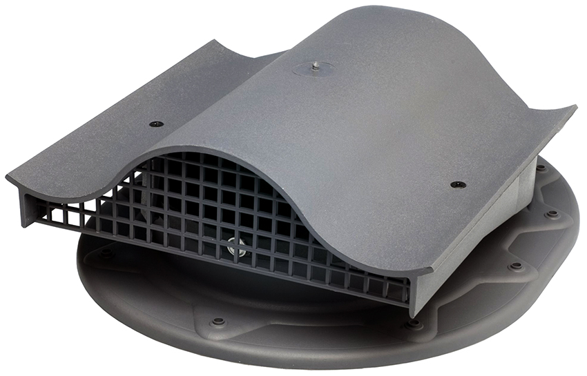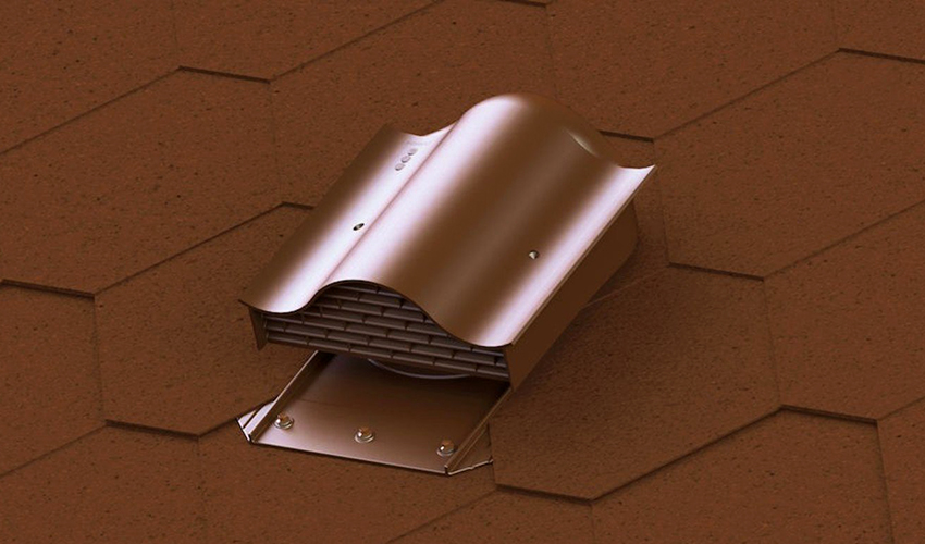 Pemasangan alat pengudaraan untuk bumbung yang ditutup dengan jubin logam-plastik dilakukan di bahagian atas sedekat mungkin dengan rabung. Badan peranti dibuat berdasarkan bahan yang paling tahan terhadap pengaruh zat dengan kandungan asam tinggi, terhadap pendedahan ultraviolet, kakisan, suhu yang melampau. Keluli tahan karat dan plastik berkekuatan tinggi sangat sesuai untuk tujuan ini.