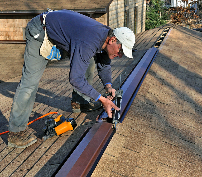 Nasihat berguna! Lebih baik memasang alat pengudaraan bernada titik di lereng dengan panjang yang signifikan, pada bidang bumbung yang mempunyai struktur yang kompleks, di rabung.