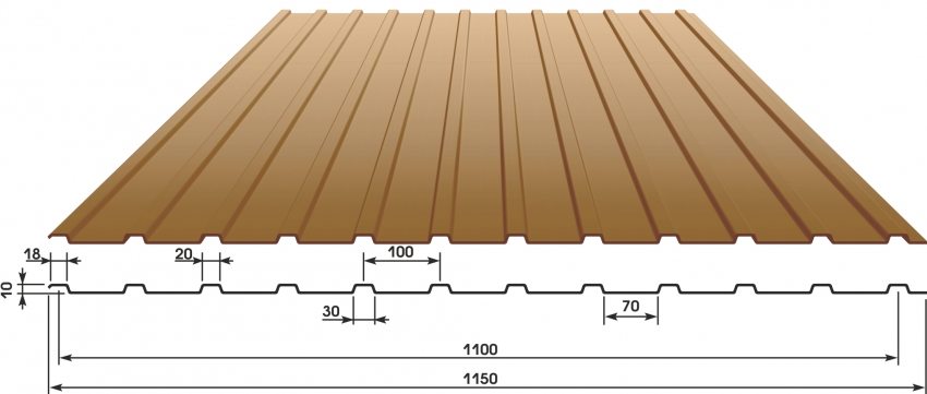 C10 - dicirikan oleh corugasi trapezoid, digunakan untuk melengkapkan atap dengan sudut kecenderungan yang cukup besar. Ia paling kerap digunakan untuk struktur utiliti dan pra-fabrikasi. Ketinggian profil adalah 10 mm, dan dimensi lembaran bergelombang untuk jenis bumbung ini berkisar antara 0,5 hingga 12 m dan lebar 1,15 m. Lebar kerja helaian adalah 1.1 m.