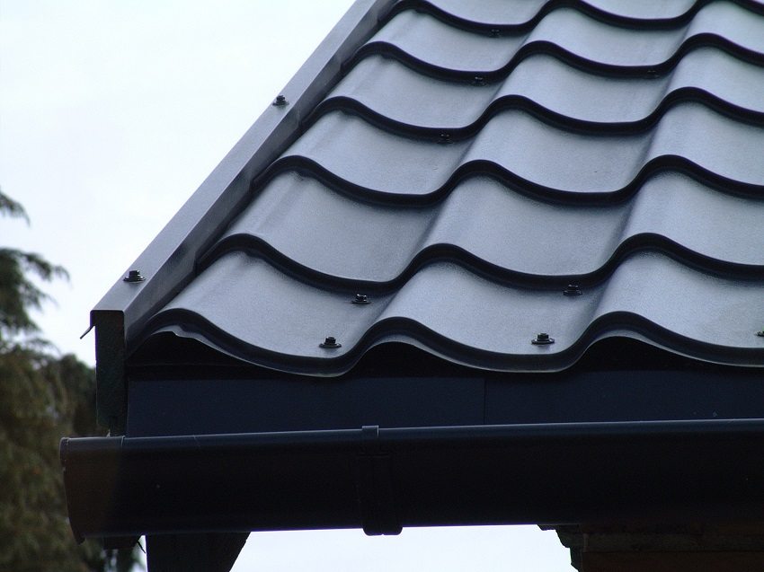 Nasihat berguna! Jubin logam sebagai bahan bumbung harus dipilih jika cerun bumbung sekurang-kurangnya 14 darjah. Jika tidak, disarankan untuk mengutamakan bahan lain.