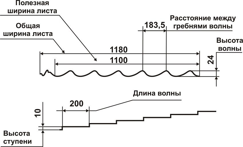 - langkah gelombang. Untuk model standard dari 35 hingga 40 cm, tetapi profil dengan ciri lain dapat dibuat berdasarkan permintaan.