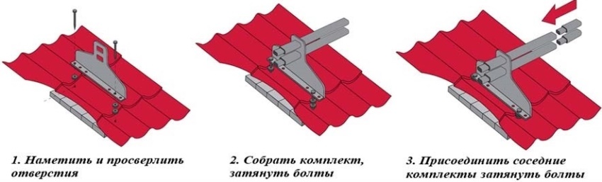 Teknologi pemasangan secara praktikalnya tidak berbeza dengan prosedur memasang pemegang salji di bumbung logam: