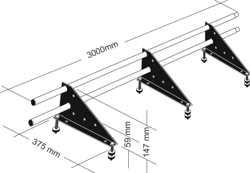 - Memperbaiki pendakap ke lereng menggunakan bolt (0.8x6 cm), dengan mengambil kira panjang dan cerunnya. Semakin besar cerun, semakin ketat pendakap dipasang. Langkah optimum ialah 0.5 m.