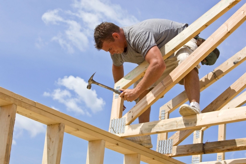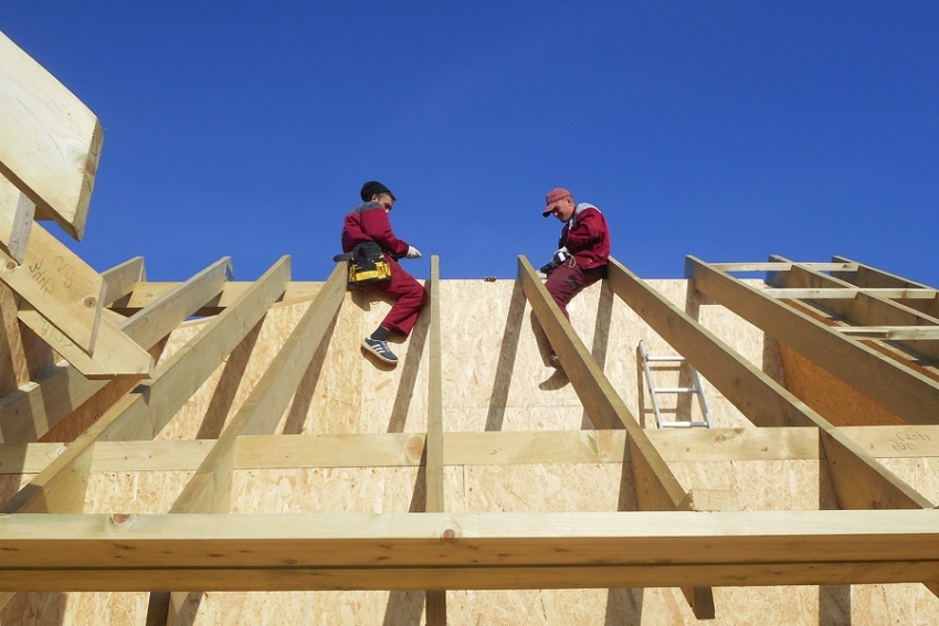 Setelah mempunyai skema sistem kasau, anda boleh meneruskan pembinaan kerangka kayu. Pertama, anda perlu memasang elemen struktur utama di mana kaki kasau dipasang.