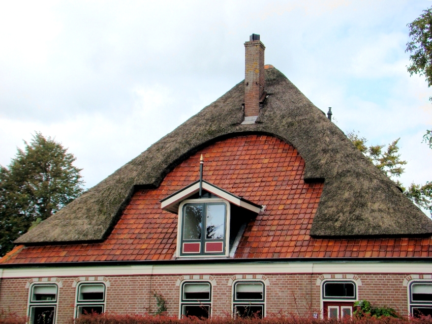 Atap Belanda separa engsel pada masa yang sama merujuk kepada struktur gable dan empat nada. Ia terdiri daripada dua lereng trapezoid yang condong dan dua pinggul segitiga yang terpotong. Pinggul kecil tidak sepenuhnya menggantikan kabel, yang memungkinkan untuk memasang tingkap menegak sederhana, yang jauh lebih murah daripada tingkap loteng. Dalam foto yang disajikan di Internet, anda dapat melihat pelbagai projek rumah dengan bumbung jenis ini.