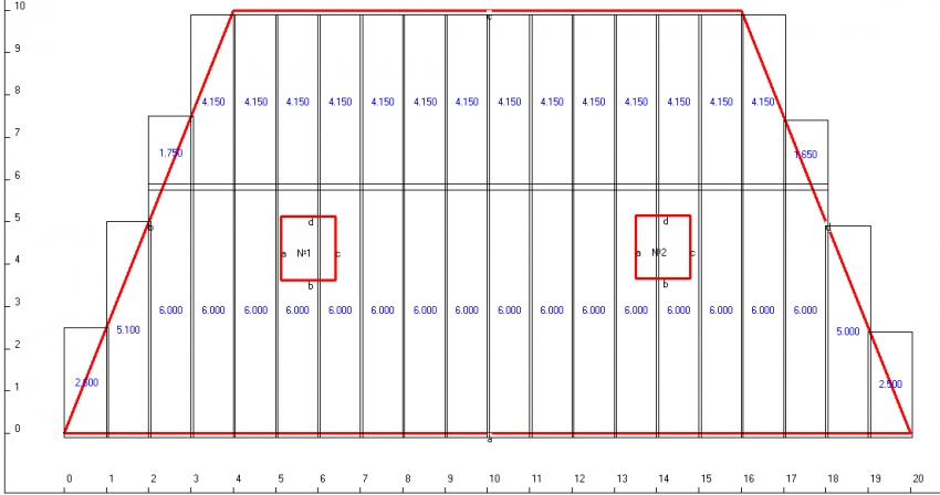 - Sekiranya cerun condong mempunyai bentuk segitiga tidak teratur, ia mesti dipecah menjadi bentuk biasa dan pengiraan dilakukan.