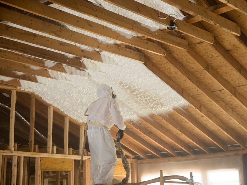 Penebat atap loteng dari dalam menggunakan busa polistirena yang diperluas, yang digunakan pada permukaan dalam bentuk cair, mengisi semua retakan