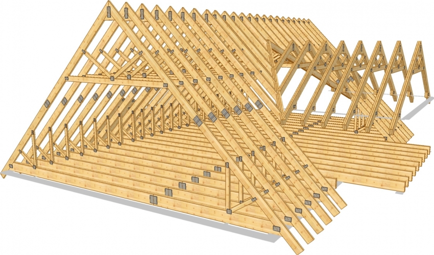 Untuk memastikan ketegaran struktur bumbung masa depan, balok rabung dipasang pada sistem kasau panjang. Lathing adalah struktur kayu tambahan yang dilekatkan pada sistem kasau, dan merupakan dasar untuk atap masa depan.