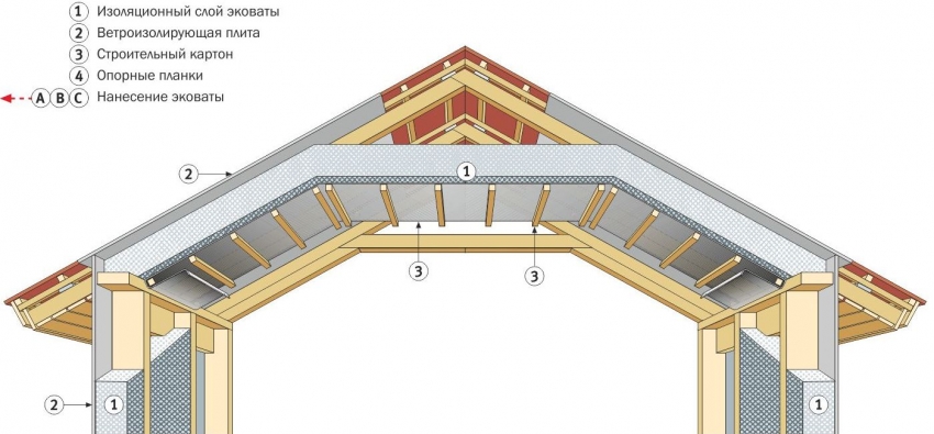 Teknologi penebat atap loteng dengan tangan anda sendiri dari dalam dilakukan dalam dua tahap. Langkah wajib pertama adalah seperti berikut: