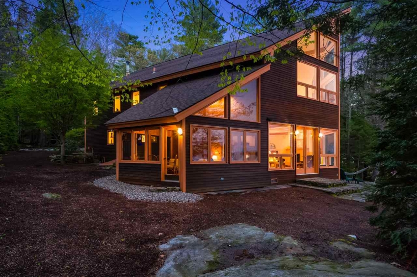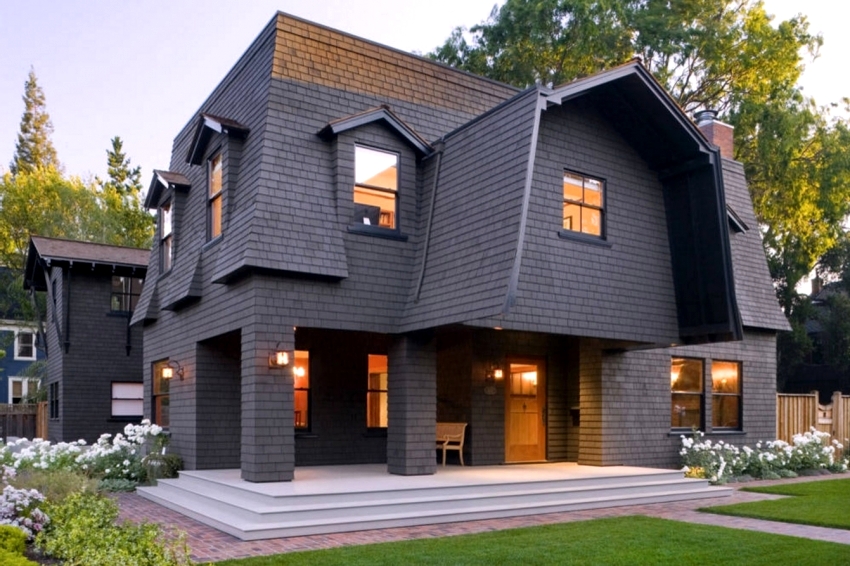 Atap gable adalah penyelesaian yang paling biasa dan rasional yang membolehkan anda mendapatkan loteng yang selesa. Foto rumah dengan bumbung mansard konfigurasi ini mengesahkan permintaan reka bentuk.