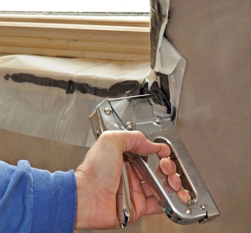 Penebat gulungan mesti diletakkan dari bawah ke atas. Untuk melakukan ini, gunakan stapler dan renda pembinaan. Melepaskan gulungan, bahan ditekan ke atas bilah. Huruf Z dilukis dengan tali dan staples.Teknologi ini digunakan untuk memasang setiap lapisan penebat.